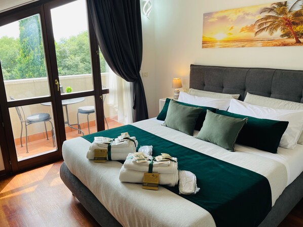 The Royal Residence Abano Terme holiday apartment is located in the center of Abano Terme, near the Duomo, and offers a beautiful mountain view. Spread over 2 floors, the property features a living room, a well-equipped kitchen, 3 bedrooms, and 2 bathrooms, accommodating up to 8 guests. Additional amenities include Wi-Fi, 3 dedicated workspaces for home office, four TVs, air conditioning, and a washing machine. The apartment boasts 5 private balconies, perfect for relaxing in the evening.
