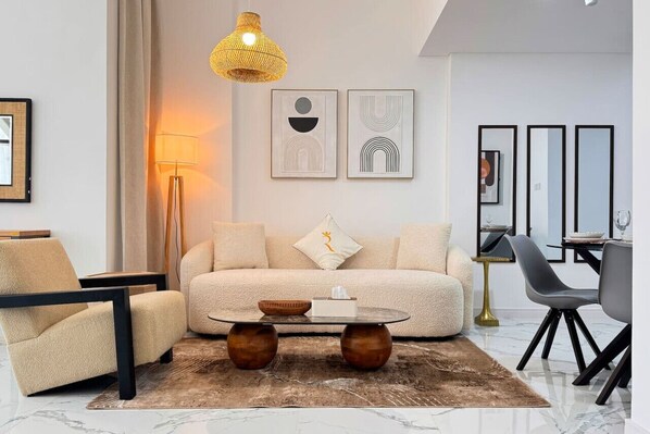 Welcome to Oasis 2 in Masdar City, a blend of modern luxury and sustainable living. Here’s what makes our apartment the perfect choice for your stay: