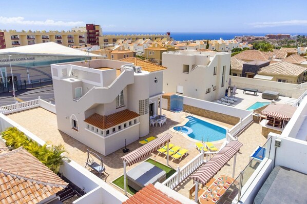 Villa Favorita, a stylish and spacious villa in central Costa Adeje, offers sleek modern interiors and plenty of space to unwind. Enjoy panoramic views across the mountains and towards the sea from the roof terrace or socialize on the generously sized main terrace with pool heating.