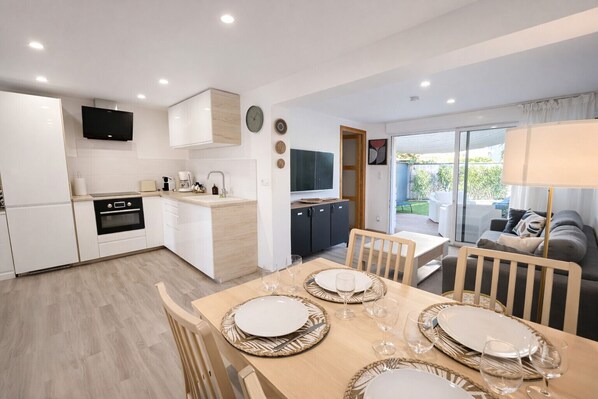 just 2 minutes walking distance to La Roquille and La Capte beaches 5 minutes from Cap d’Agde International Golf everything within walking distance, perfect for a car-free holiday