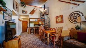 Mountain Spirit #311 is a haven for snow sports enthusiasts. Nestled two blocks from the Chile Express chairlift, this condo offers ample space with a cozy fireplace, private balconies, and modern amenities like full-size appliances and flat-screen TVs.