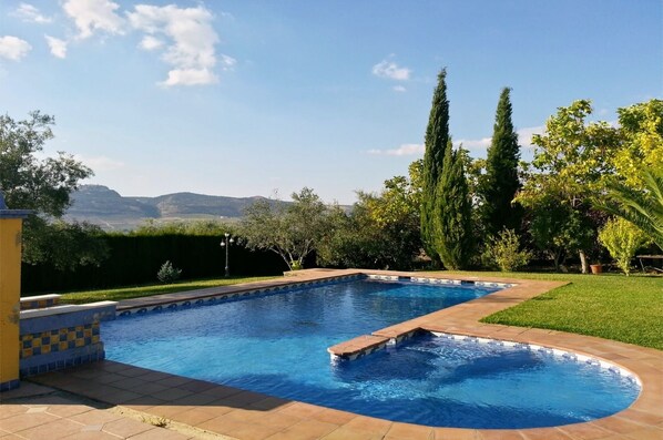 Really wonderful house with everything we needed. The pool was large and clean, with a great poolhouse including fridge and cooking facilities so we could while away much of the day by the pool. Great garden with a lovely pond full of frogs and fish, and a mini Alhambra fountain path which was so special lit up at night. Location is great, on outskirts of small town (our stay coincided with local fiesta, nice to see all the locals enjoying themselves) and loads to see and do in the area. Our host Juan was very helpful and attentive to any issues. Best place we've stayed in ages.