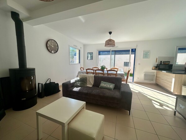 Outside, enjoy a pleasant terrace and barbecue for al fresco dining in a peaceful setting. Wi-Fi, TV, workspace, and amenities for little ones are also provided.