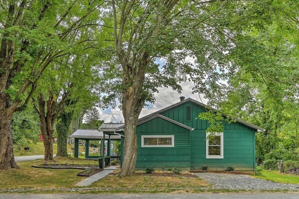 In the charming town of Woodfin, this stylish retreat offers modern comfort and convenience with a full-size kitchen and dedicated workspace. Unwind by the fire pit or enjoy outdoor activities like kayaking at nearby Woodfin River Park.