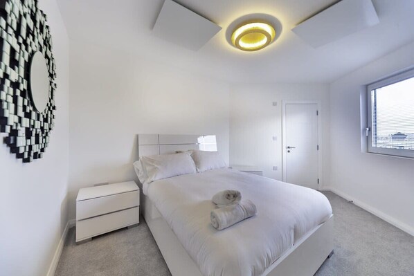 -Both bedrooms are doubles with ample storage and crisp, hotel-quality linen. You’ll also have two bathrooms; both with showers, with one additionally featuring a bath; plus fluffy towels and complimentary toiletries provided.