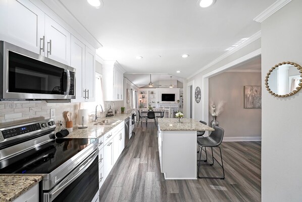 - Fully stocked kitchen for your culinary needs