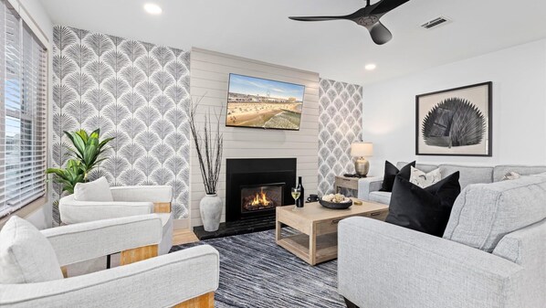 TV, fireplace, offices - 3BR Modern 2nd Floor Condo | Easy Walk to Beach! (Ocean City)