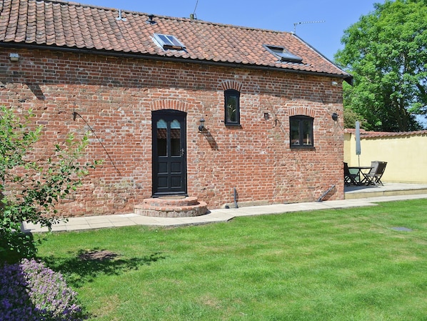 Bathroom: Bath, Cubicle Shower, Toilet. Oil central heating, electricity, bed linen, towels and Wi-Fi included. Initial logs for wood burner included, remainder available locally. Travel cot and highchair. Small, enclosed lawned garden with patio and garden furniture. Private parking for 2 cars. No smoking. Please note: There is a step in the garden.. This detached barn conversion is a delight for lovers of the countryside. Although close to the owner’s home, it stands on its own and is a holiday base for visiting the attractions of Norfolk and Suffolk. A pottery can be found in the village, whilst Banham Zoo, Bressingham Gardens and Steam Museum, and Thetford Forest are nearby. The Norfolk Broads and Norwich with its cathedral, castle museum, shopping, pubs and restaurants can be reached within half an hour. 18-hole golf courses at Richmond Park, Watton, Thetford Forest and Barnham Broom. Dinosaur Park, 27 miles. Shop and pub ¾ mile.