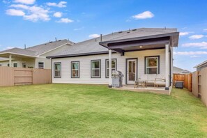 In Austin's vibrant heart, this modern 5-bedroom retreat offers a welcoming atmosphere and natural light in the open-plan living area. With a fully equipped kitchen, spacious yard with patio and BBQ grill, you can unwind after exploring nearby landmarks like Lady Bird Lake and downtown Austin.