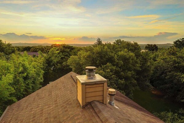 This spacious three-story home is perfect for your next family vacation! Enjoy a fire pit, hot tub, pool, spacious fenced-in yard, multiple patios, and an "Eagle Nest" on the third floor overlooking the surrounding treetops. Just 15 miles from Austin!