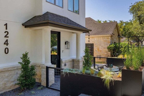 Outdoor Features: Private entrance, courtyard, and sunny patio with seating
