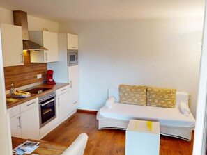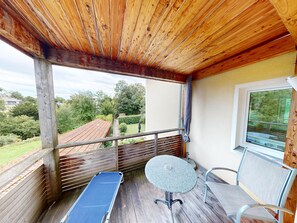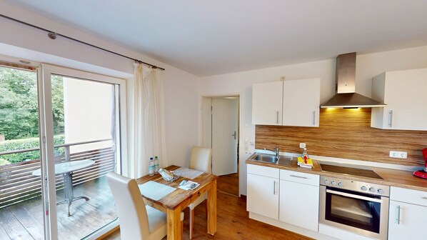 Suite 4 on the 1st floor, 1.5 room apartment with south-facing balcony provides a garden and more. Stay connected with in-room WiFi.