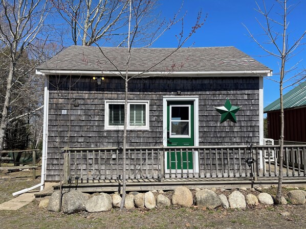 The Pasture View Cottage is situated to the north side of the Stable, with a beautiful wrap-around porch that is covered in the rear. You will see the cottage when you enter the property through the gates. There is parking to the left of the cottage.