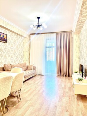 Modern 2-bedroom apartment near Tofiq Bahramov Stadium, Baku provides laundry facilities and more. Guests can connect to in-room WiFi.