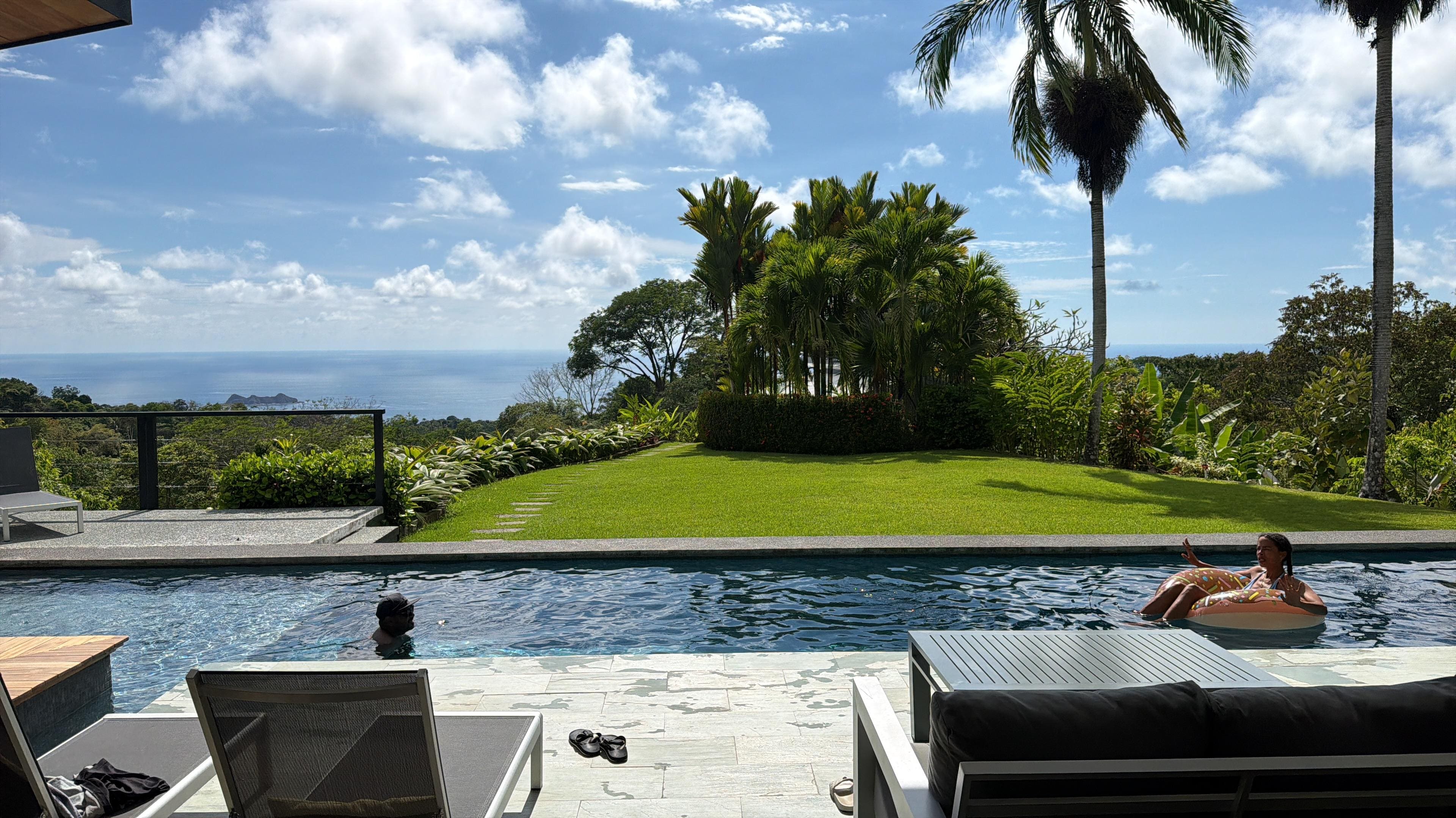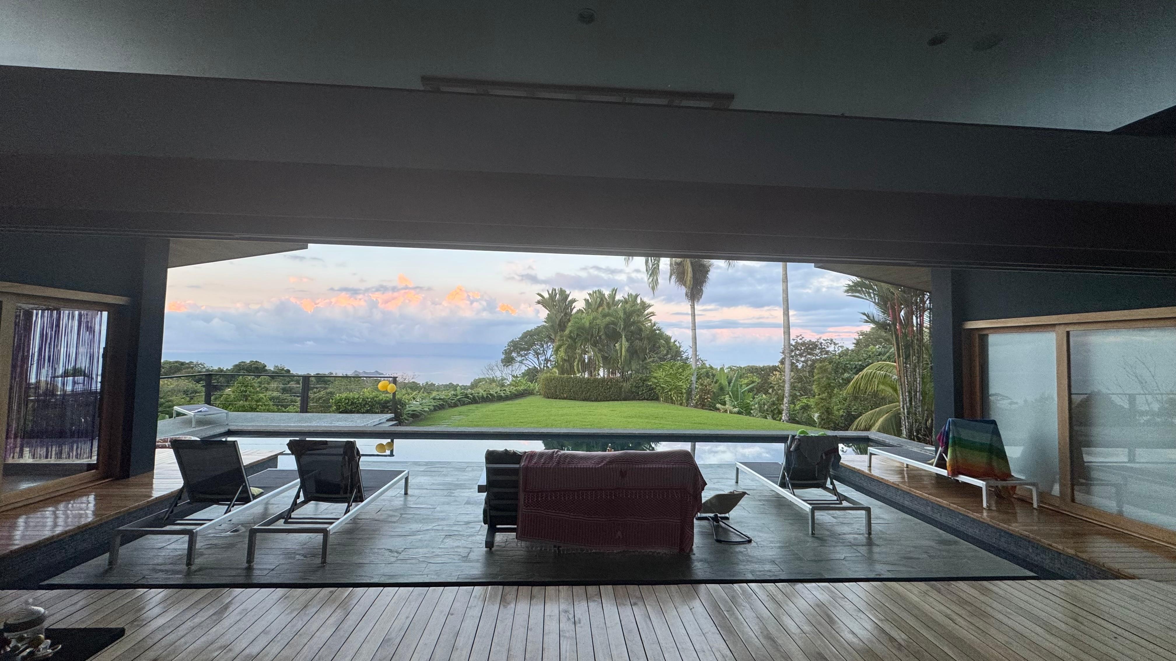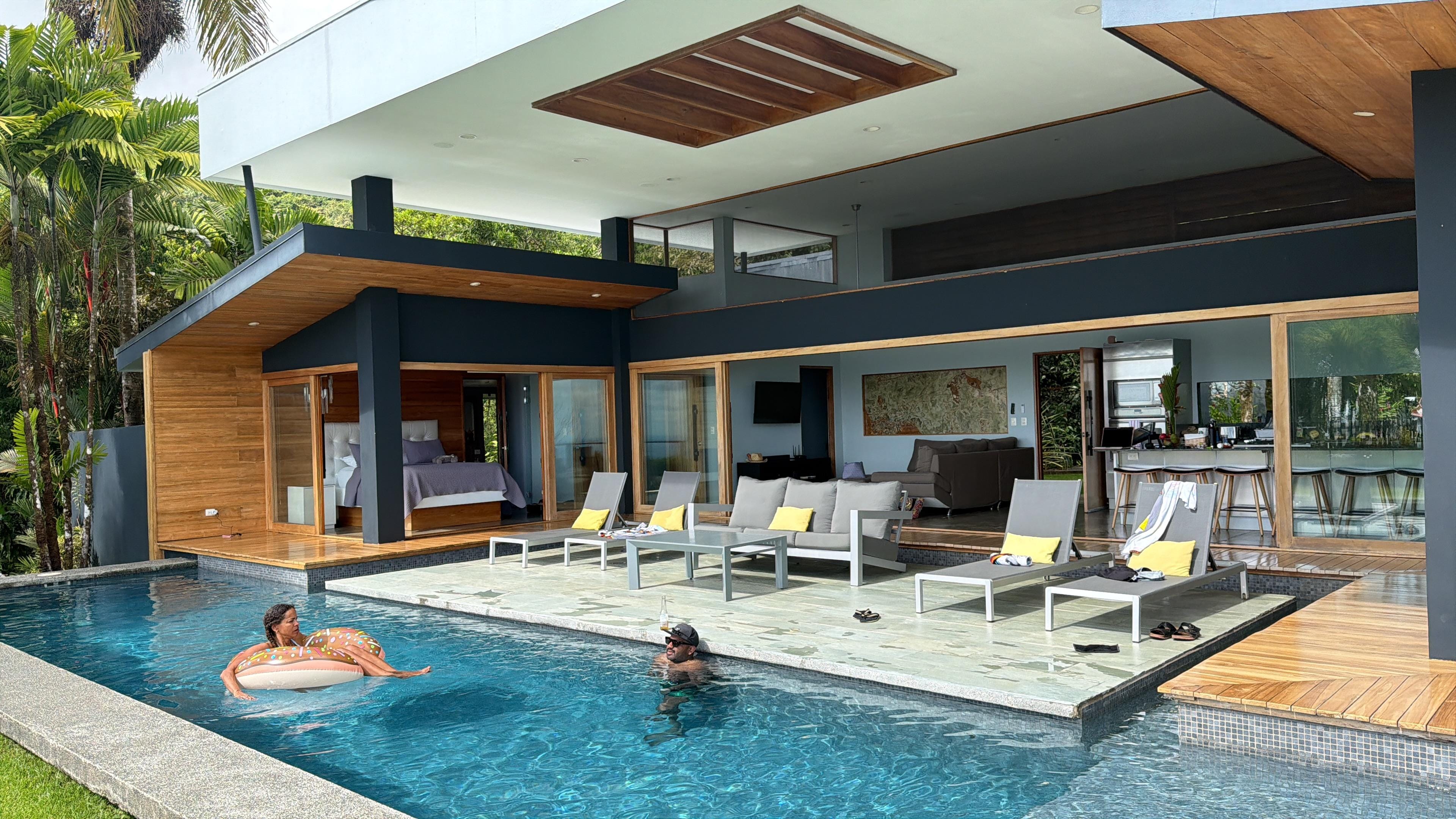 After a day of adventure, return home to unwind with a poolside couples massage, prepare gourmet meals in the sleek kitchen with stainless steel appliances and a gas cooktop, or enjoy a private chef experience. Dine al fresco while watching breathtaking sunsets over the ocean and jungle vistas, then relax by the exquisite pool or cozy up with a movie using the HDTV and fiber-optic Wi-Fi.