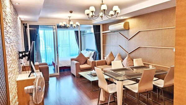 ## Important Information ## This is a renovated unit in an established building. ** Optional cleaning with linen and towel change is available for THB 1,200. ** Unlimited drinking water is provided; exchange empty bottles at the ground-floor office. ** Our team is always available to assist. Damages may incur charges per platform policy.