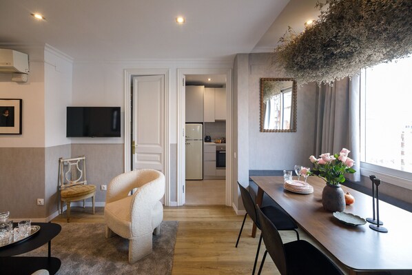 The open plan living/dining area provides ample space to relax and kick-back after a day in the city. The modern kitchen is fully equipped with everything you need to make a homemade meal. The apartment is fully air-conditioned with heating in winter and comes with free wi-fi and smart tv.