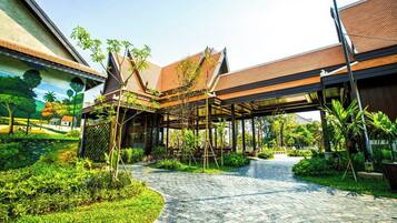 cleanliness Upscale hotel in Svay Pao offers rejuvenating retreat with 4 treatment rooms, sauna, and poolside relaxation.