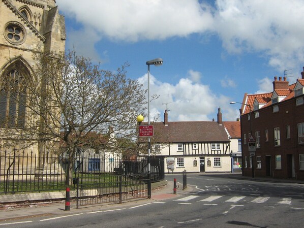 Minster View is a 1 bedroom apartment in central Beverley sleeping 2 - 4 persons. On the first floor, it faces Beverley Minster from the spacious lounge which is well appointed with a double sofa bed, comfortable seating for 4 and providing LCD flat screen smart TV with Freeview, DVD player and CD/radio with iPod dock. There is fibre optic wifi broadband internet provided for guests. The dining area seats 4, for which ample equipment is provided. A beautiful double bedroom with walk-in wardrobe offers views of the Minster and the oldest pub in the East Riding. The family bathroom has a full sized bath with a shower over. A separate kitchen is equipped with fridge-freezer, microwave, washing machine, cooker, kettle, toaster and coffee machine and is kitted out with all the crockery, cutlery and cooking equipment you would expect. A small library of books, CDs and DVDs is provided, along with a selection of games and plenty of tourist information. The apartment has its own private parking space, invaluable in the centre of town.