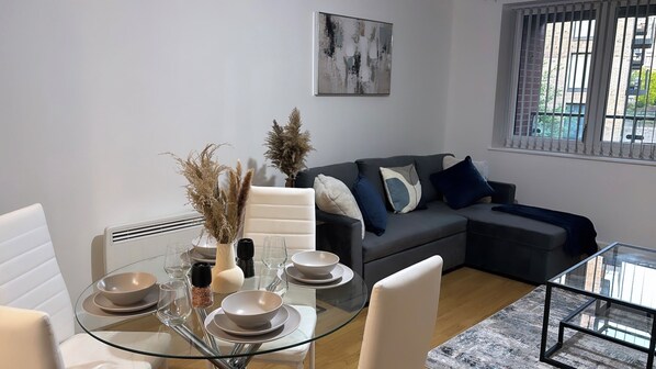 Experience the best of Birmingham at this apartment, perfectly blending luxury and comfort. Step inside to unwind in a modern space with plush seating, 50 inch smart TV, and a fully equipped kitchen with coffee machine. With private parking available nearby attractions are easily accessible.