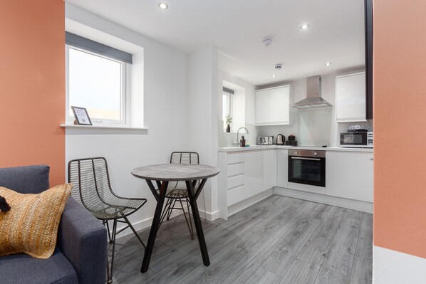 Fridge, microwave, oven, stovetop - Stylish One Bed Apartment, Close to the beach, Central location (Blackpool)
