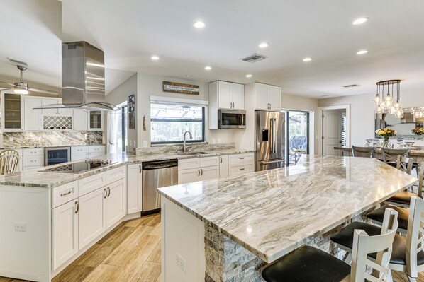 Embrace the ease of Gulf Coast living at this bright and airy Bonita Springs vacation rental. The property serves as your personal oasis, with a furnished lanai and a pool with lake views, all within 5 miles of the best beaches! Essential amenities are provided for a seamless stay — including in-home laundry, dual living rooms, and a gourmet kitchen — so you can focus on relaxing. Book your extended getaway today!