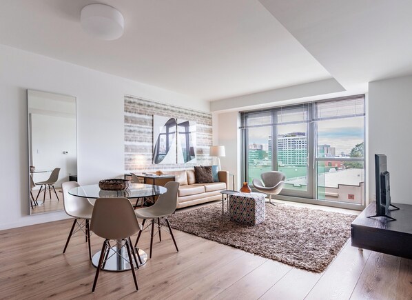 Pets are allowed in select apartments and are subject to a $500 non-refundable pet sanitation fee for one pet, $750 for two pets. Additional charges and size/breed restrictions may apply and vary by building. All pets must be approved by Furnished Quarters. Please let us know ahead of booking if you plan on traveling with a pet.