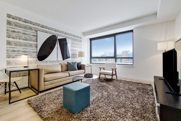 This apartment is professionally managed by Furnished Quarters, the largest independently owned and operated supplier of short-term furnished housing with over 25 years of experience in the industry. The apartment is found in a luxury building located in Boston's Fenway Cultural District. Amenities include 24/7 concierge service, a state-of-the-art fitness center, a Sun Deck and Sky Deck, workspaces, conference rooms and more. The property is just steps from Kenmore Square and Back Bay. Enjoy the cultural capital of Boston, the Fenway Cultural District, while staying in this gorgeous one-bedroom apartment with floor-to-ceiling windows, high ceilings, German-engineered stainless steel appliances, white quartz countertops, European-style frameless kitchen cabinets with generous storage, smartphone-controlled lighting options, spa-inspired bathrooms, wide-plank flooring, wall-to-wall carpeting in the bedrooms and a front-loading washer and dryer in the apartment. All beds provided are, fitted with plush linens and pillows. All Furnished Quarters apartments include24/7 guest service.