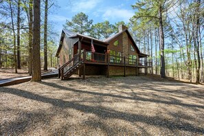 Escape to Fox Tales, nestled in the woods near Beavers Bend State Park. This cabin offers a haven with its open floor plan, gas log fireplace, Smart TVs in every room, and game tables for indoor fun. The two-level back decks feature cozy furnishings perfect for morning coffee or stargazing at night by the outdoor firepit.
