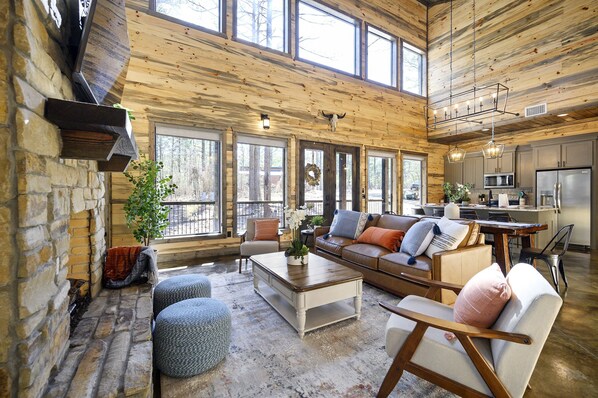 Escape to Happily Ava-After, a family-friendly cabin offering plenty of space to relax and make memories. The fully-stocked kitchen provides everything needed for cooking delicious meals. Enjoy the covered patio decks with an outdoor fireplace, hot tub, and cornhole games.