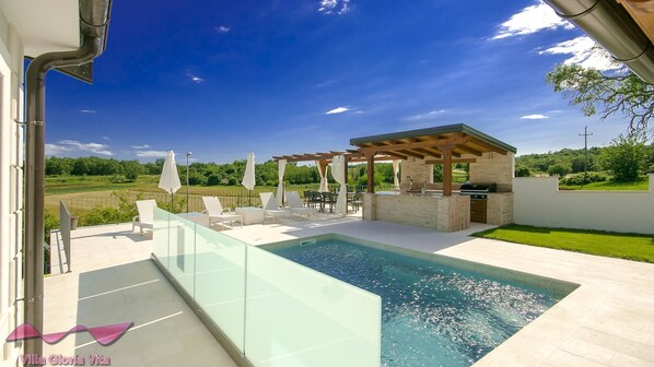 Villa Gloria Vita is located in the small village of Nova Vas, near Novigrad. A stay in this villa will provide you with the vacation you've been dreaming of for a long time, as well as a real wellness experience. In the courtyard of the villa you will find a swimming pool, while in the villa you will find a hydromassage tub, so you can relax regardless of the weather. The villa has 4 bedrooms and 4 bathrooms, it is intended for 9 guests and will gladly welcome pets.