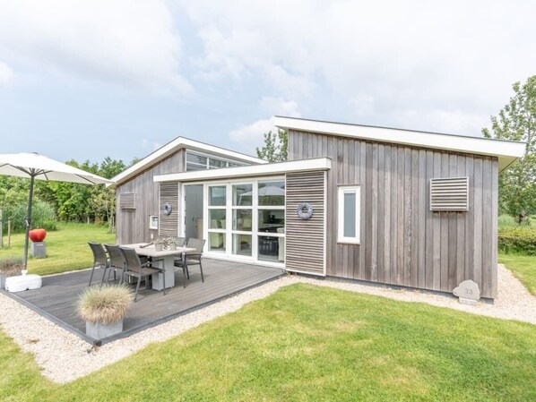 This chalet is situated on the edge of the park (with a view of a lake) and is equipped with all ame