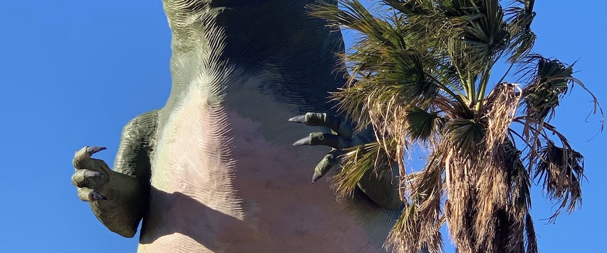 The massive dinosaur statues at Cabazon's roadside attraction make perfect photo stops between Palm Springs and Los Angeles. Bargain hunters flock to the outlet mall while road-trippers fuel up with date shakes from nearby farms.