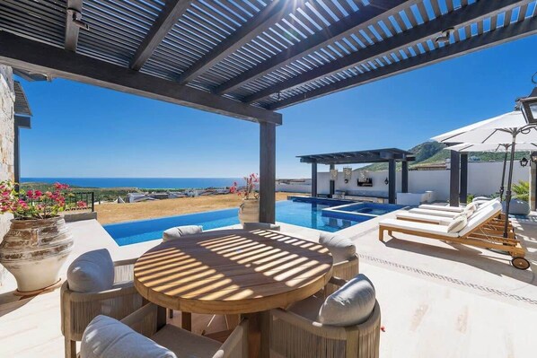 Imagine your group gathered around the infinity pool, ocean stretching to the horizon while the grill sizzles. This isn't just another rental, it's your private resort with Wolf-equipped kitchen, 5 ensuite bedrooms, and luxury amenities throughout. Access to world-class Quivira Golf, enjoy 20% spa discounts, or stay in with chef service and ocean views. Perfect for celebrations, golf trips, or just to enjoy a slice of paradise for a memorable and luxurious experience!