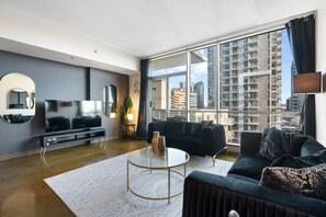 Close to Calgary Tower and BMO Centre, Sleek Suite w View | 1BR, AC near BMO & Stampede has plenty to offer. Stay connected with in-room WiFi.