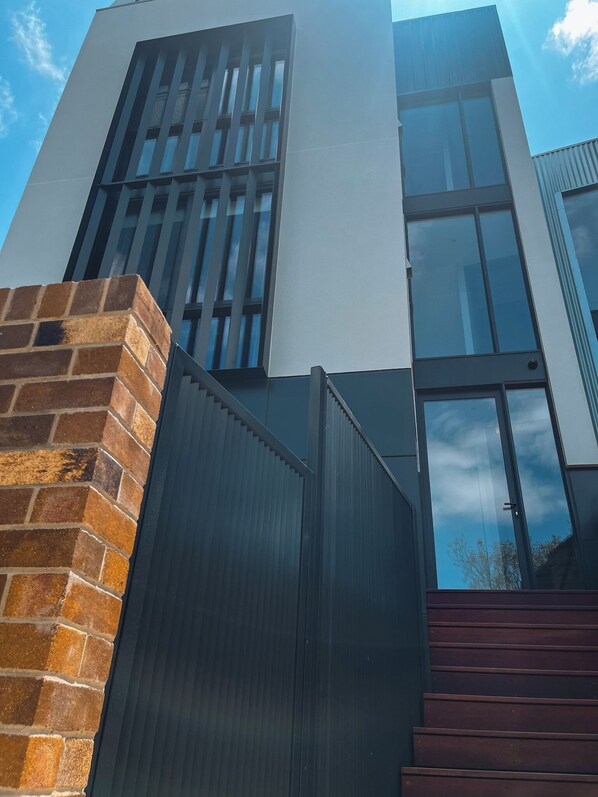 Spacious yet cleverly compact, this third-floor micro-apartment is where boutique hotel style meets at-home comfort. With separate zones to cook, sleep, and relax, the space is designed for comfort and usability — with no wasted space. High ceilings, treetop views, and bold design make it a place you’ll want to linger in. The compact kitchen is fully equipped for real meals. 350m to the tram, 10–15 min walk to Lonsdale St.