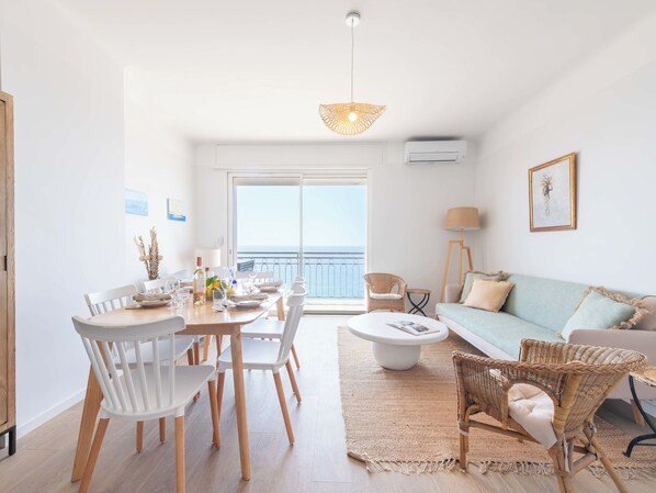 From the entrance, the breathtaking sea view captures your attention. The bright living space opens onto a south-facing terrace.