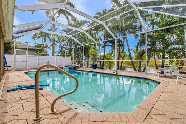 Exceptional waterfront home, refreshing pool, spa, family and dog friendly, W/D provides amenities, such as a water park and a garden.