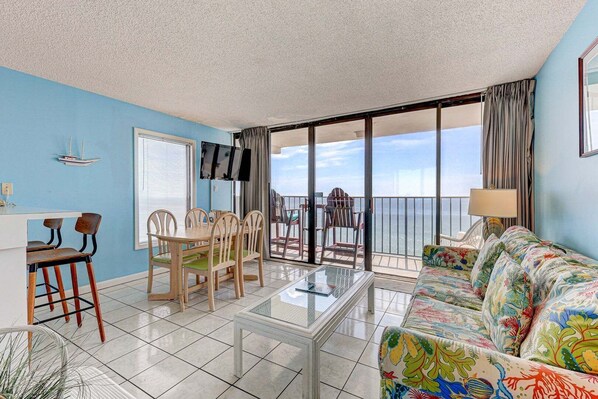 Breathtaking oceanfront view at Carolina Beach in a cozy 1-bedroom condo.