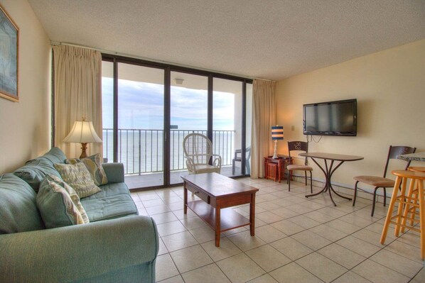 ONE BEDROOM OCEANFRONT CONDOMINIUM, ONE FULL BATH, PRIVATE OCEANFRONT BALCONY, KING SIZE BED, TWIN BED IN ALCOVE, SLEEPER SOFA, TWO FLAT SCREEN TV'S (40" IN LIVING ROOM 31" IN BEDROOM), ONE DVD COMBO, ONE DVD PLAYER, NON-SMOKING UNIT, SLEEPS 5.