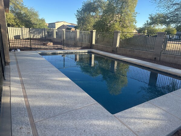 This beautiful home, designed for giants boasts doors that are 8 feet tall and ceilings that tower from 9 feet to 20 feet. Enjoy time in in the private heated swimming pool, playing pool on a regulation pool table or watching TV on any one of the seven TV's in this home. All bedrooms have TV's and USB connections. Enjoy the features outside, swimming, grilling or just hang out on the porch and enjoy our Arizona evenings. Complete kitchen, Keurig coffee with plenty of pods, brew coffee along with Sugar, stevia, Splenda, Nutrasweet, creamer and more.