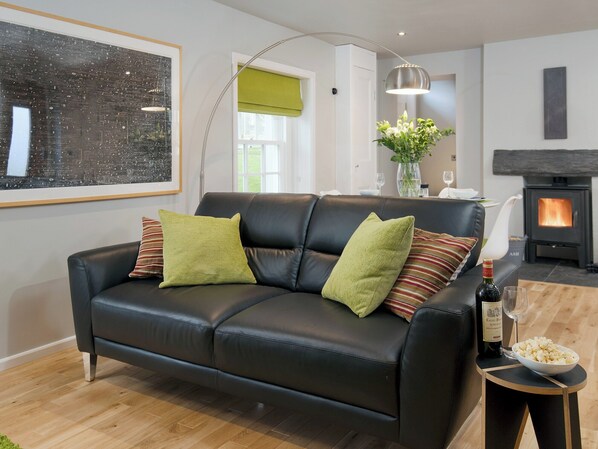 Shower Room: Walk-In Shower, Heated Towel Rail, Toilet. Gas central heating, electricity, bed linen, towels and Wi-Fi included. Initial fuel for multi-fuel burner included. Freezer and tumble dryer on site (shared with other cottages). Welcome pack.. Enclosed courtyard (shared with other cottages). Sitting-out area with garden furniture. Private parking for 2 cars. No smoking. Please note: There is one step in the courtyard.. The perfect getaway for a couple, this large and sumptuous, one-bedroomed, terraced house is decorated using a colour scheme of soft greys and a splash of green, and makes an ideal retreat away from the hustle and bustle of everyday life. Cosy up on the sofa in front of a blazing fire, or sit in the garden and enjoy the night sky. A wonderful ‘home from home’, Granary has it all - and your dog is welcome too!