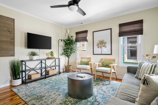 Discover the charm of historic downtown Charleston at Palmetto Cottage, a modern and clean second-floor apartment with an amazing WALKABILITY SCORE of 95. Enjoy spacious living and kitchen areas perfect for groups or families, plus three queen bedrooms and a hallway bathroom. Take advantage of one off-street parking spot, with additional parking nearby in the City of Charleston garage.