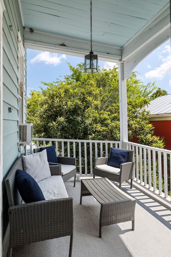 The 4-bedroom front unit is 1850 square feet with 4 bedrooms (3 king beds and 1 queen) and 3.5 bathrooms. The kitchen comes equipped with a full refrigerator, dishwasher and a gas range that is perfect for cooking and entertaining. Spend your days enjoying all that Charleston has to offer and your evenings relaxing on the spacious front porch equipped with a porch swing or the private back porch!