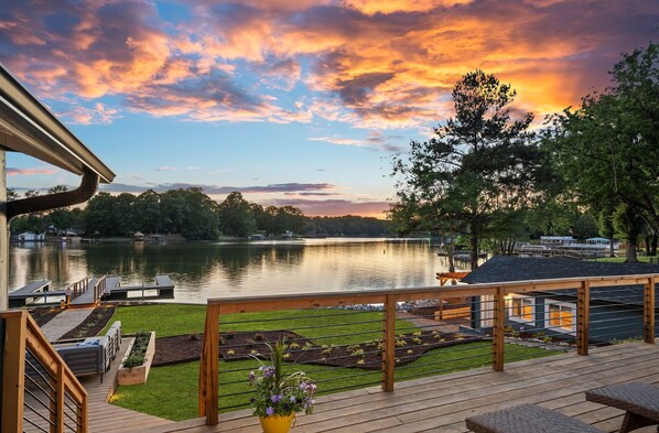 We loved everything about this house. The house is so cute and so well appointed. The kitchen had everything we needed. We loved the welcome basket filled with goodies. The beds were very comfortable. The outdoor spaces were amazing with many different seating options and areas. The boathouse was great for a little extra privacy. The views of the lake from the house were so pretty. We loved the sunsets. And another nice point is that this section of the lake is fairly quiet with not a lot of boat traffic so that was an extra bonus. It was nice and quite. We hope to be back!