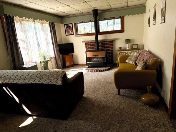 This little cottage has so much to offer. The outdoor area has a fire pit, picnic table, and well maintained yard with plenty of space for yard games. Watch deer grazing in the pasture as you sit next to your campfire. The interior is quaint, clean, and cozy. We provide everything you need for a comfortable stay. There is a new gas stove and the kitchen is fully stocked with dishes, pots, pans, and anything else you may need to cook. It also has a refrigerator, coffee pot, microwave, and toaster. The bathroom is brand new and completely remodeled. There is a shower, but no tub. There is wifi at the cottage. The living room has a futon style couch and a tv with a Roku to access all of your streaming apps. Along with a selection of books and games for the whole family. There are two bedrooms, each have a full size bed.
