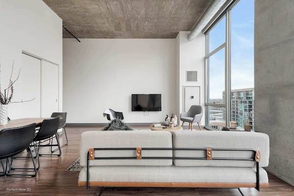 - Top-floor skyline views + modern open layout