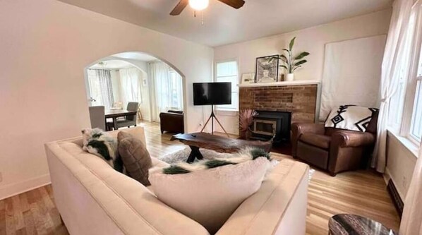 Escape to The Peaceful Fox, nestled in a quiet neighborhood. Unwind in the serene outdoor shower or enjoy alfresco dining on the back patio with gas Italian range for cooking up a storm.