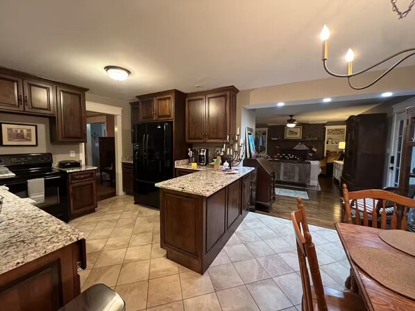 The space Our home is 2100sf, set on a half acre, in a safe and well kept, quiet neighborhood set on 1/2 acre trees lots. It is a short drive to shopping, downtown, the arena, Austin Peay and about a 20 min easy drive to Fort Campbell. The back yard is large and private with a patio and many shade trees. One side and the very back of the yard is fenced. The remaining side is not. The central living space offers a double living room with brick fireplace that looks out onto the private backyard and patio area. No houses are visible from all windows in the rear of the house, just trees. The kitchen has everything you need to cook a complete meal, full refrigerator, stove, toaster, coffee maker and espresso machine, blender, mixer, crockpot, air fryer, George Foreman indoor grill, stainless steel cookware, bakeware and dish-ware that serves 8. The primary bedroom is large with a queen bed that is the most comfortable bed you will ever sleep in. A large primary bathroom is attached and a walk-in closet. The secondary bedroom has a full bed and walk-in closet. The third bedroom has two twin beds. All bedrooms have dressers and closets.