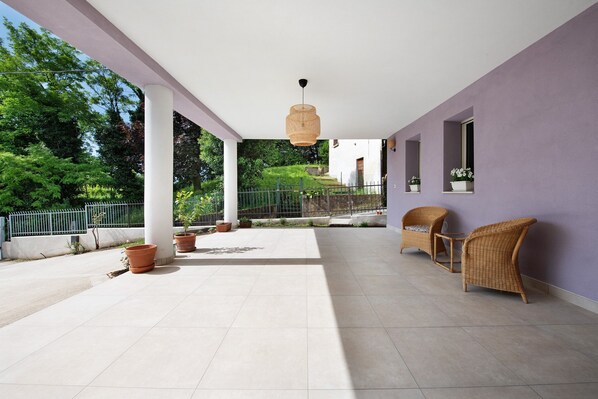 This vacation rental features a shared covered terrace for evening relaxation.